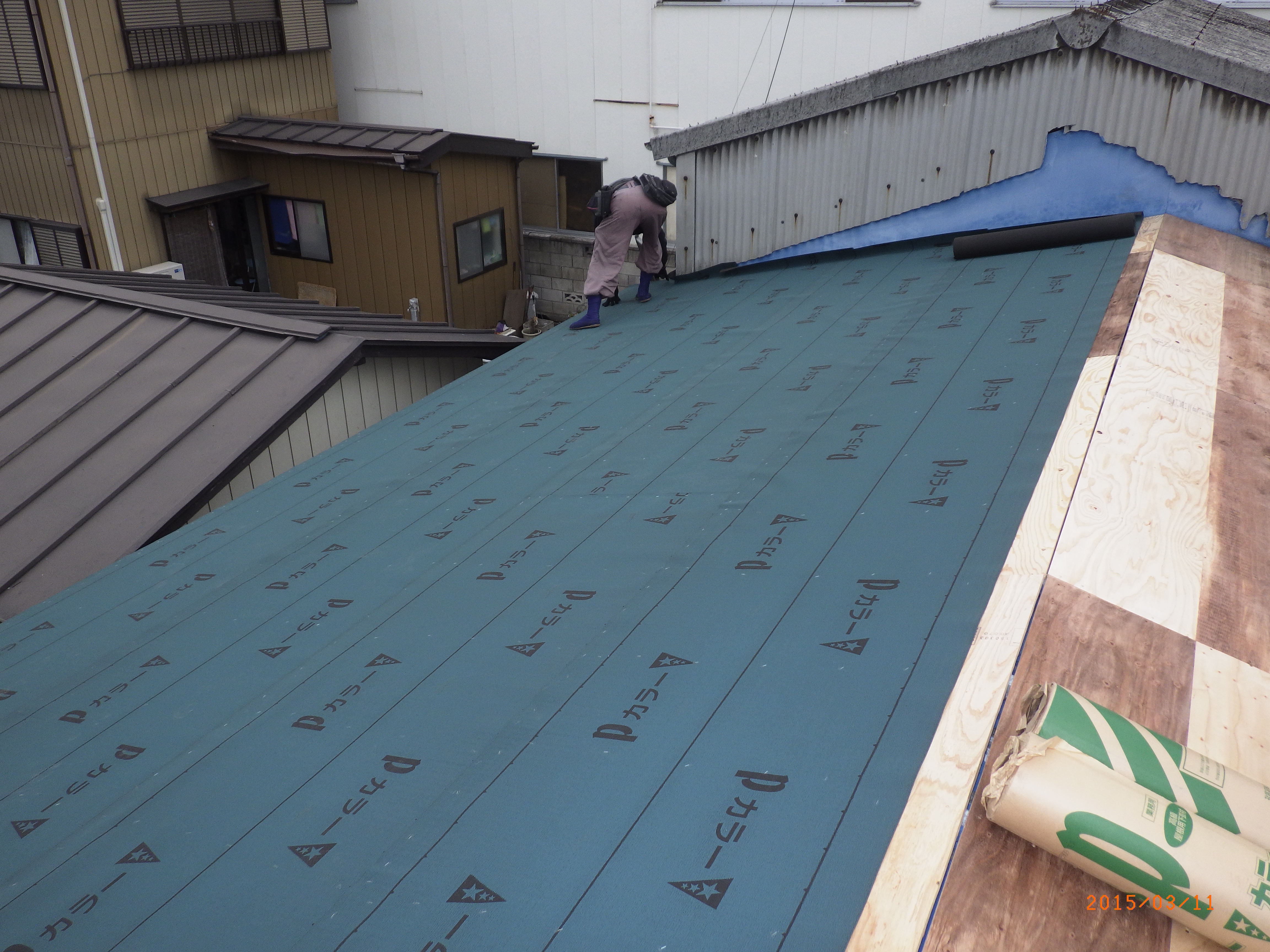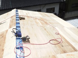 ベニヤ下地上貼り中、もう少しで下地完了です
