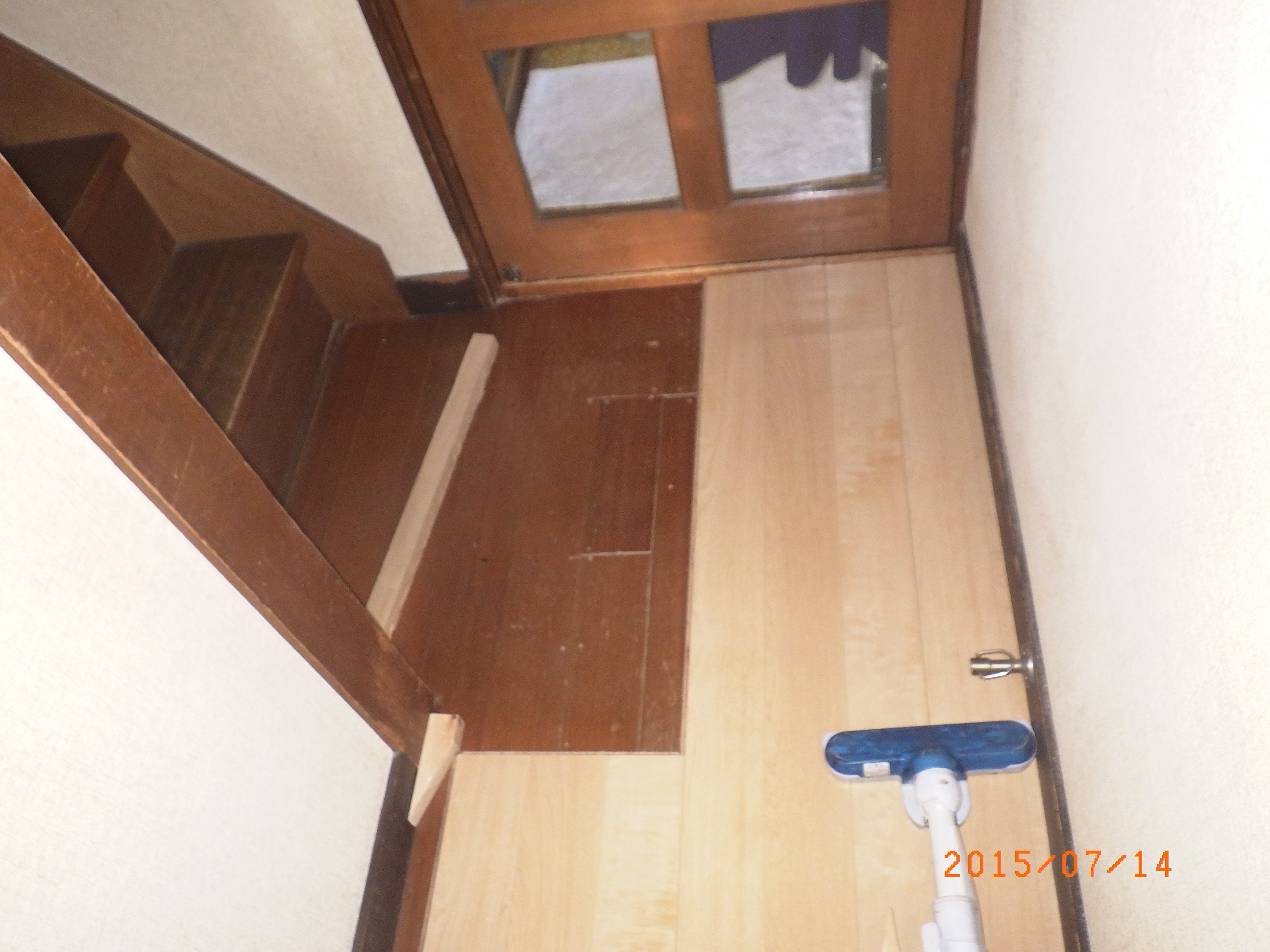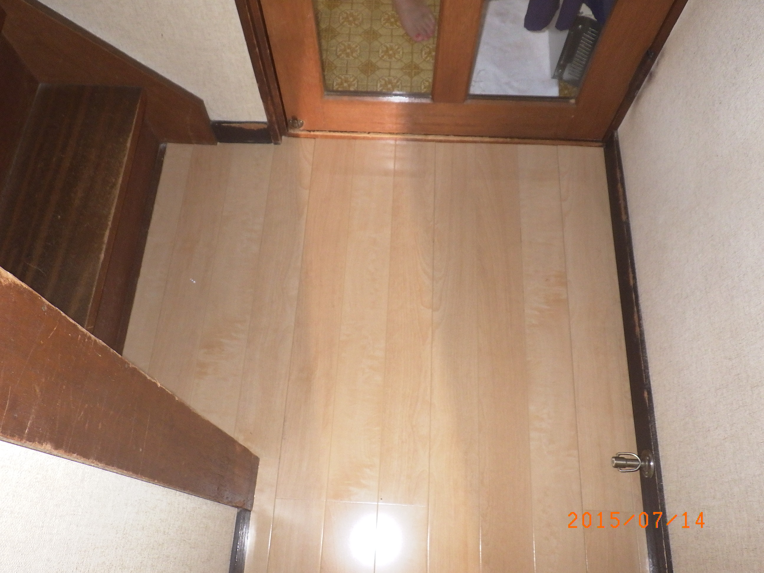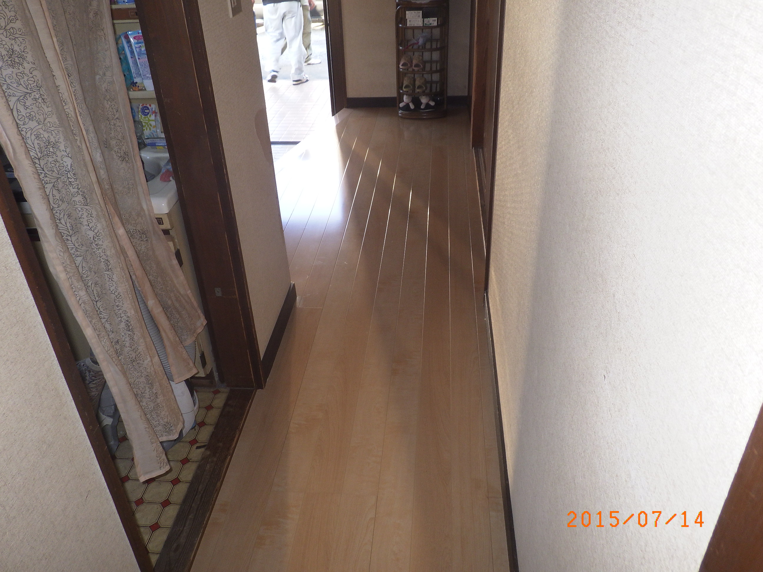玄関、廊下フローリング上貼り工事前です。