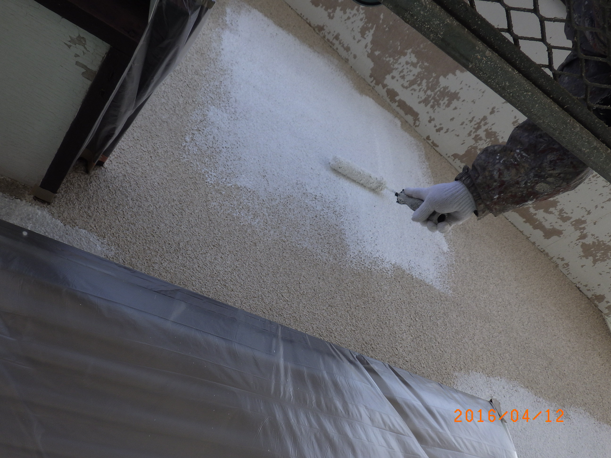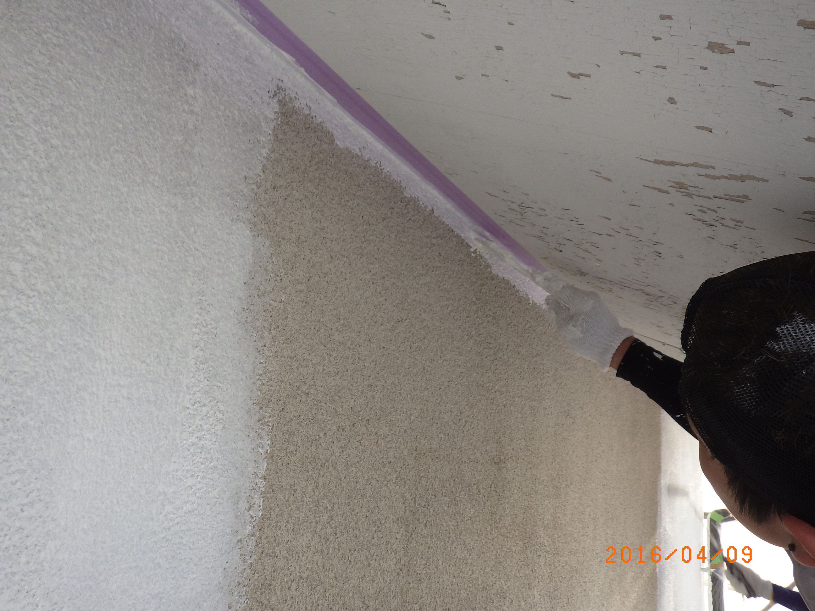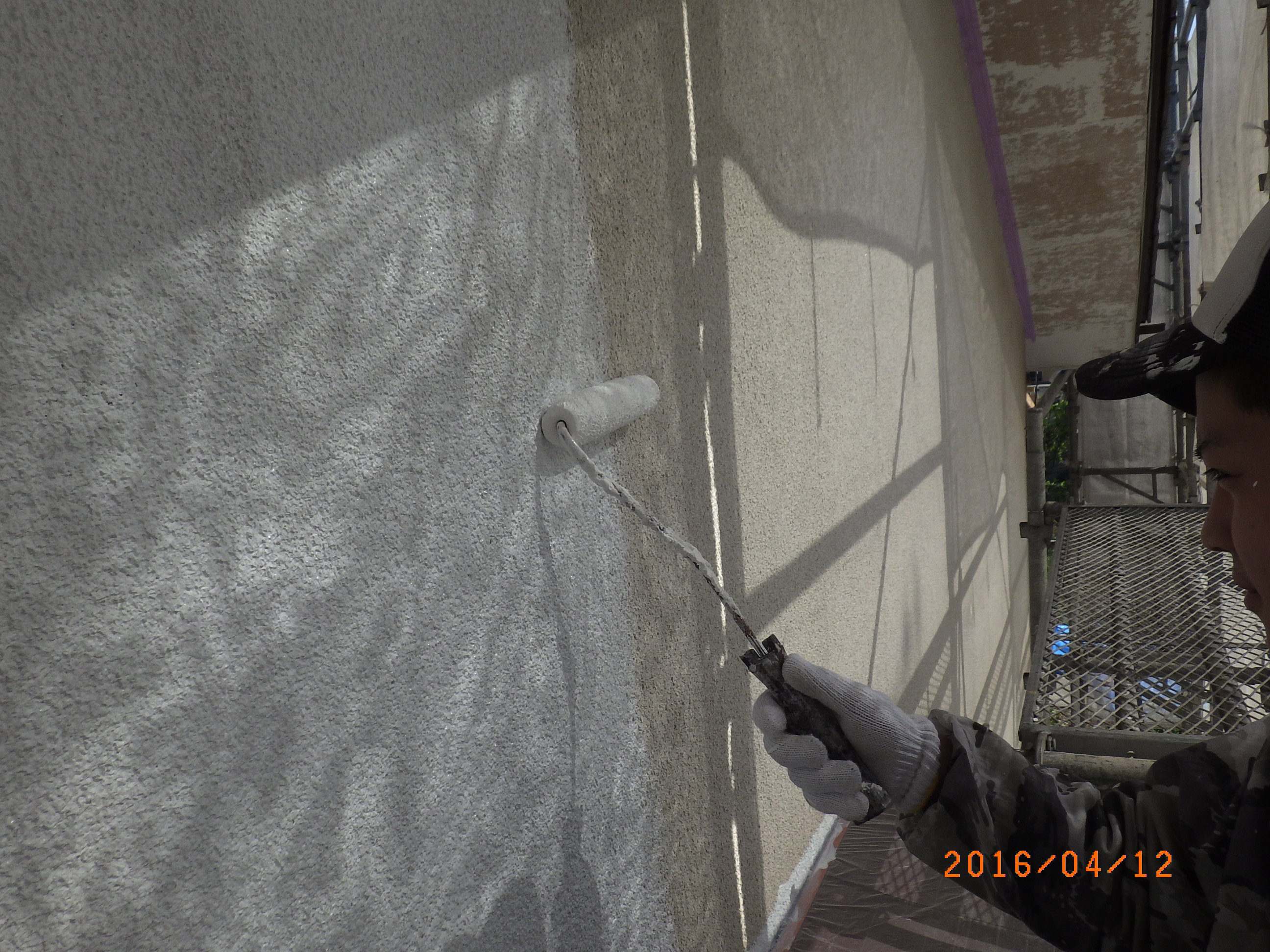 下塗り1回目作業中です。細かい部分も丁寧に塗り込みます。