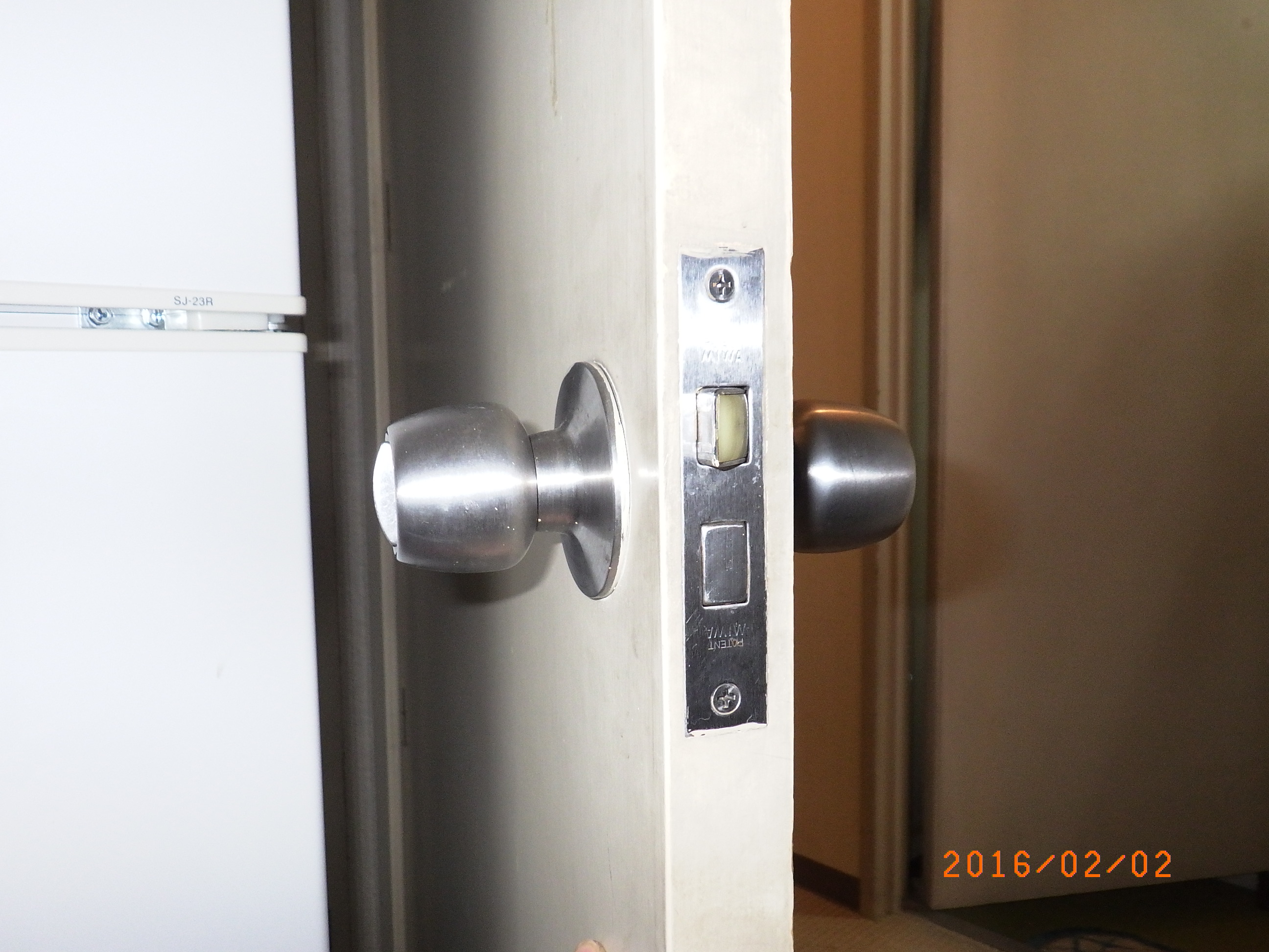 居室出入り口ドアノブが不具合で、これを機に交換です。