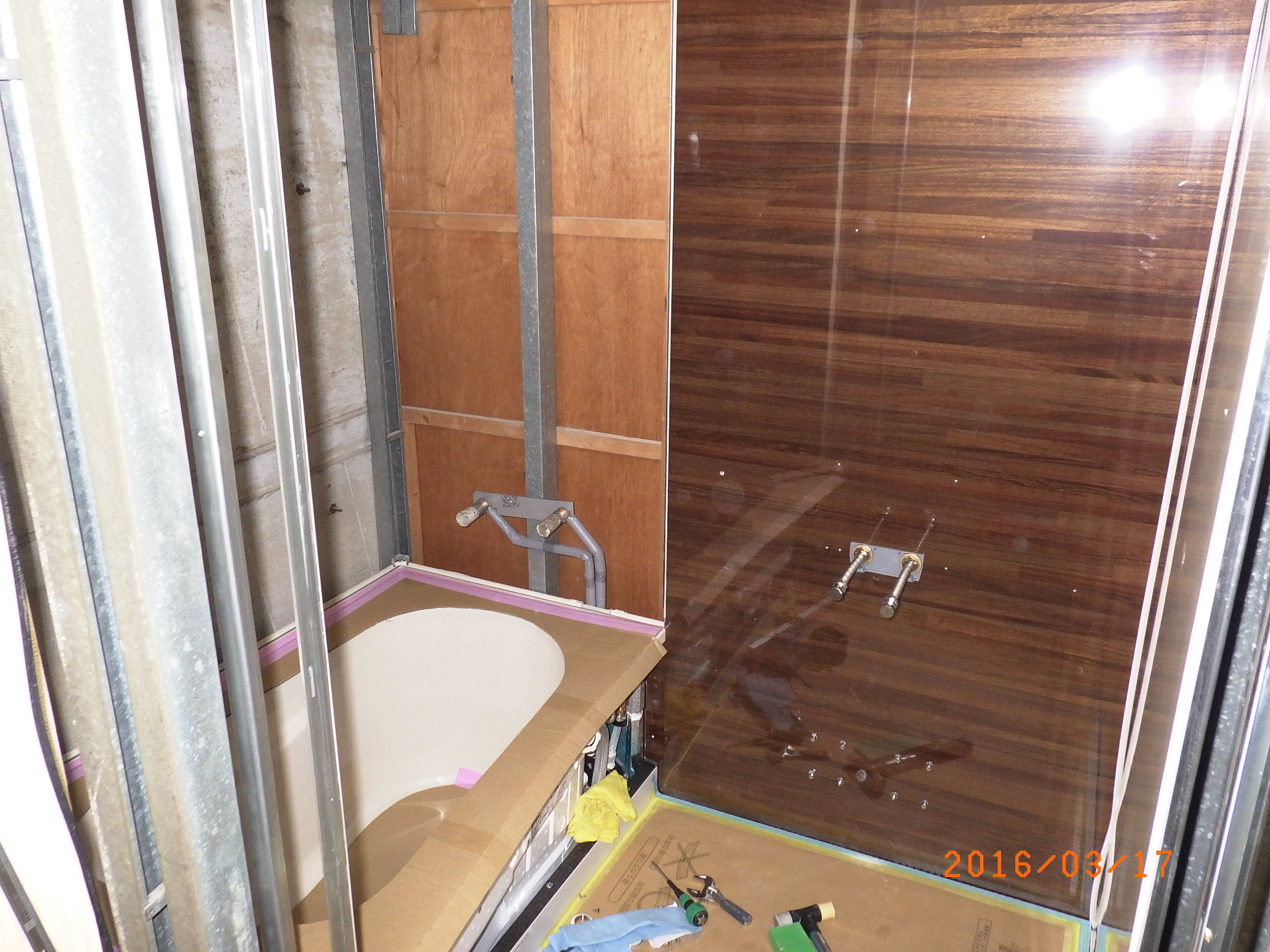 浴槽、壁と順番に組んで行きます。