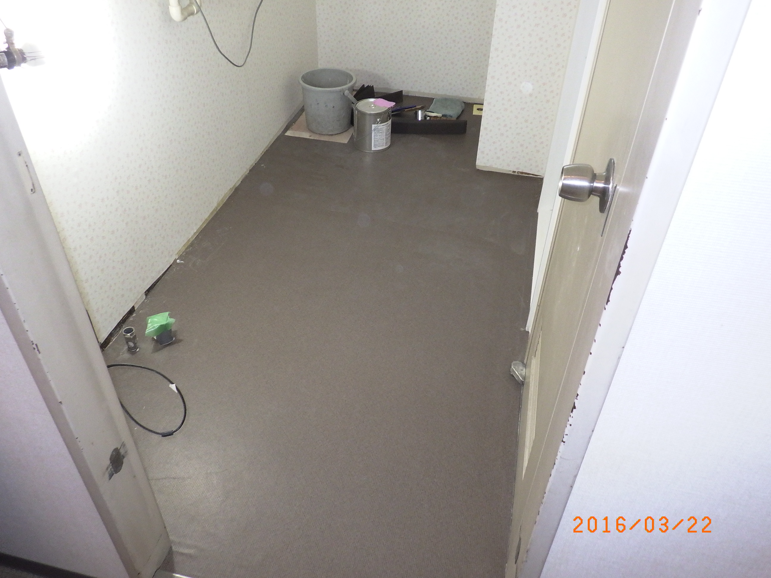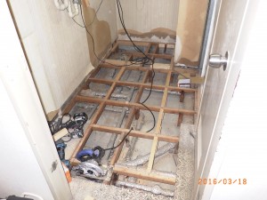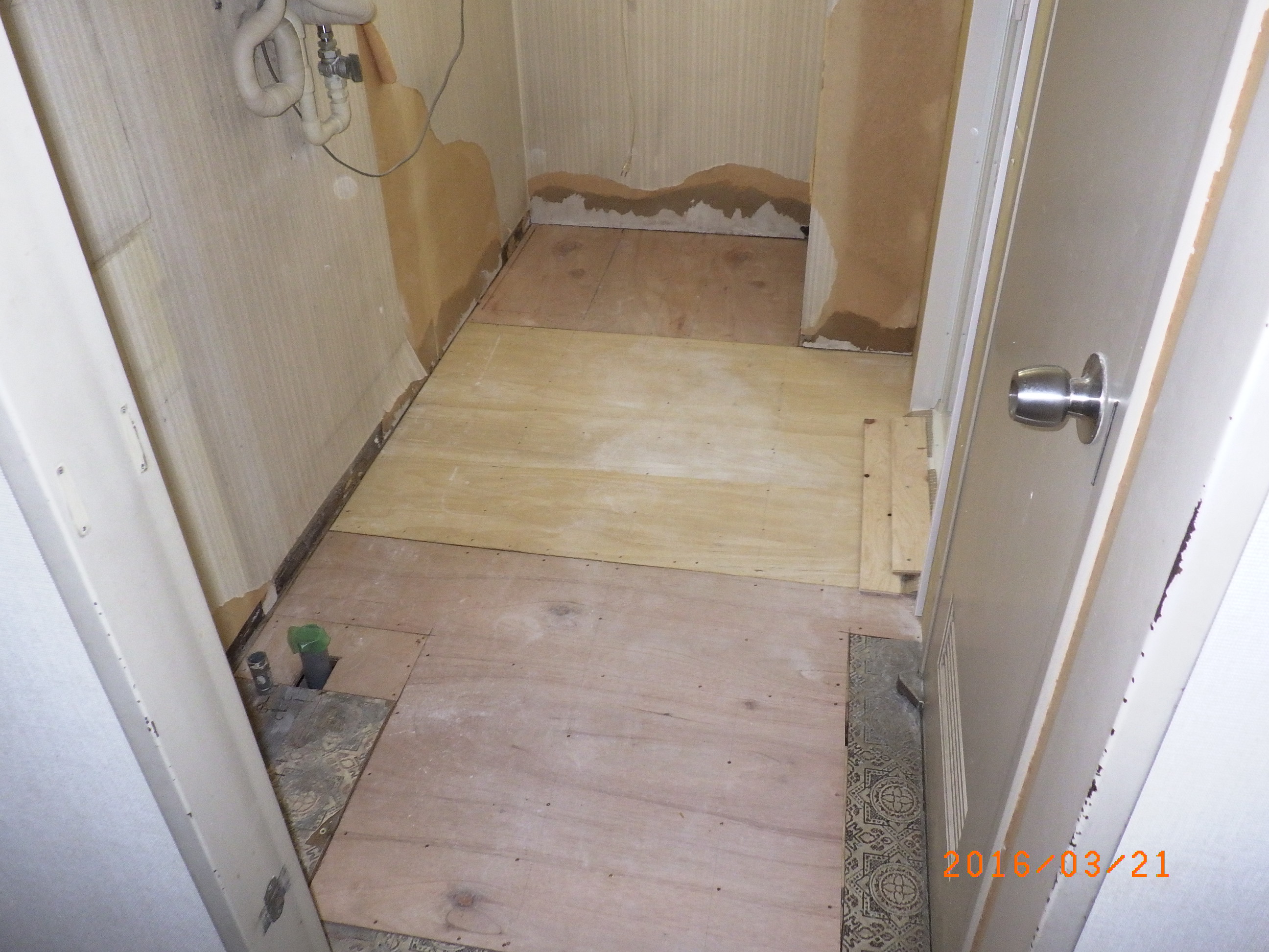 洗面所床張り替え途中です。