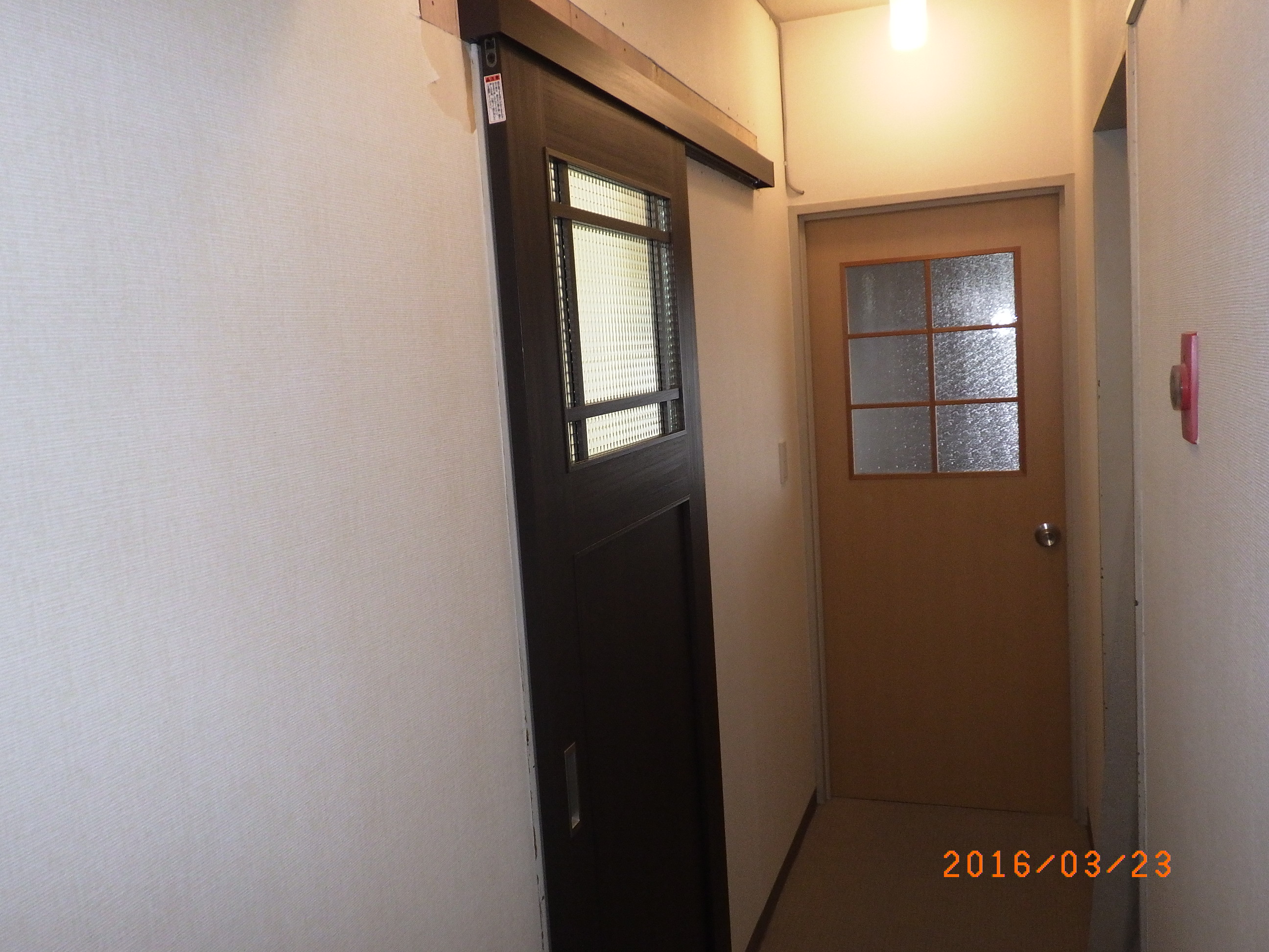 洗面所出入り口、引き戸取りつけ完了です。